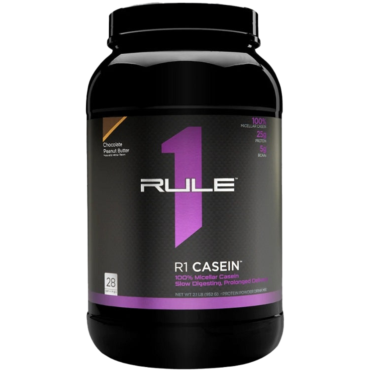 Rule One R1 Casein, Chocolate Peanut Butter - 952 grams is your go-to choice for a sustained protein source that perfectly complements your active lifestyle. Designed for those moments when you need a steady supply of protein, this micellar casein formula is excellent for use between meals or before bedtime.