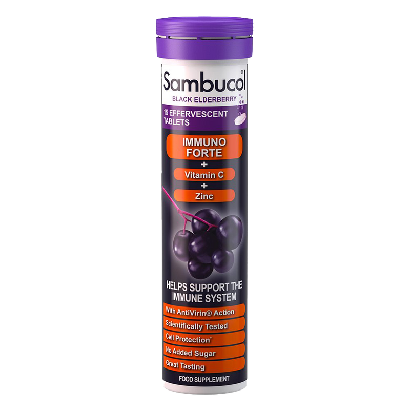 • Sambucol Effervescent Tablet x 15 offers a convenient way to harness the natural power of Black Elderberries along with essential vitamins that play an important role in supporting the immune system. Each effervescent tablet quickly dissolves in water to create a tasty berry-flavored drink that everyone can enjoy, helping to make healthy habits a fun experience for both children and adults. With a commitment to quality, Sambucol leverages over 25 years of scientific research to deliver an elderberry product that is trusted by families across the UK.